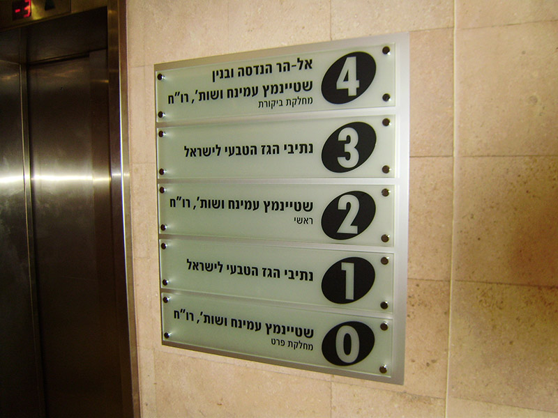 שלטים מזכוכית שילוט יוקרתי המיועד לשילוט משרדים, קומות, מעליות וחדרים,